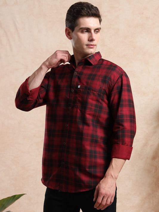 4BOXCHKS Red and Black Check Cotton Blend Full Sleeve Shirt for Men