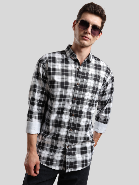 4BOXCHECKS Black & White Cotton Blend Checkered Full Sleeve Shirt for Men