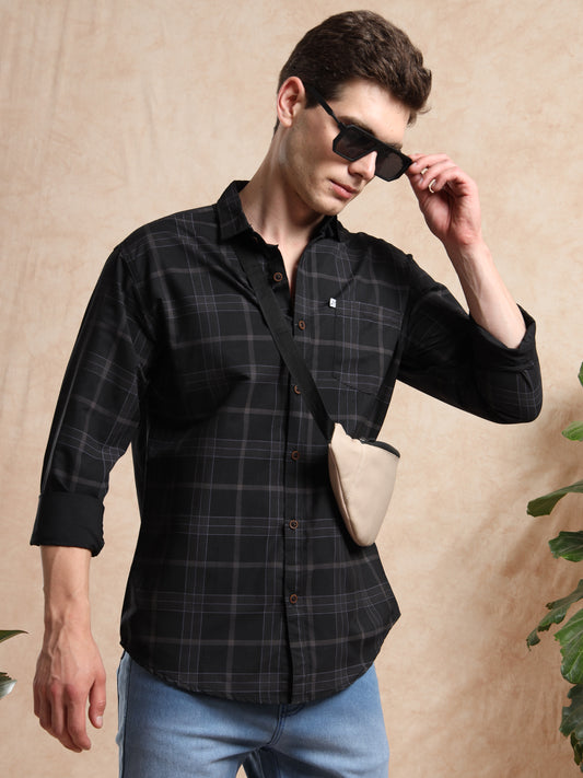 Gummychks Black Check Cotton Blend Full Sleeve Shirt for Men