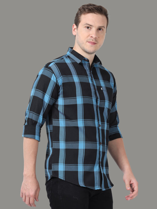 CORNETOCHKS Blue & Black Cotton Blend Checkered Full Sleeve Shirt for Men