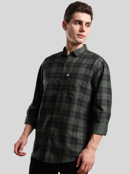 4BOXCHECKS Dark Green & Black Cotton Blend Checkered Full Sleeve Shirt for Men