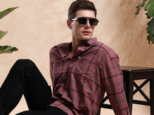 GUMMYCHKS Cotton Dusty Rose & Charcoal Black Plaid Shirt for Men