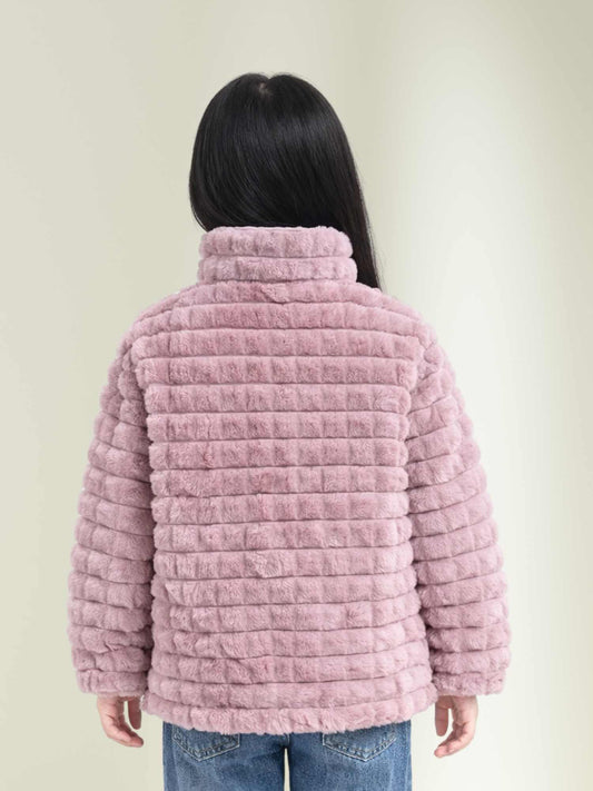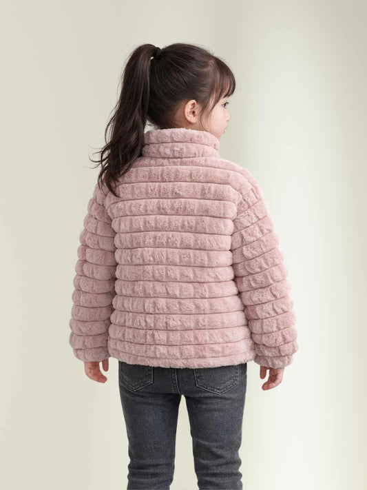 Girl's Pink Faux Fur Winter Jacket – Soft Zip-Up Warm Coat