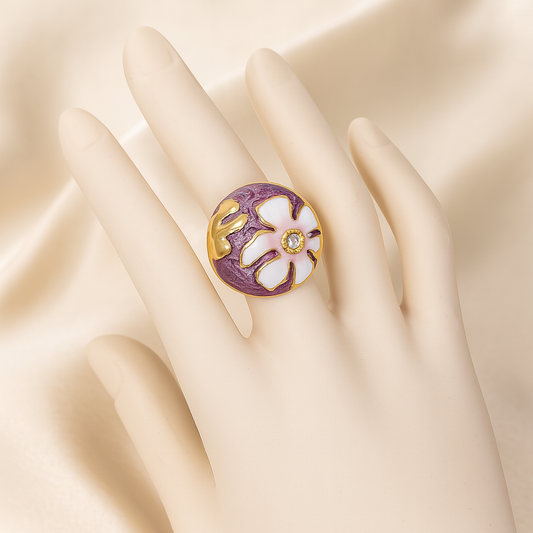 premium Gold-Plated Floral Enamel with Diamond Accent ring for women