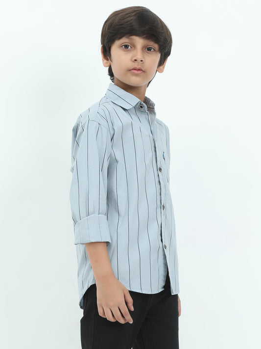 4BOXCHKS Grey and Black Check Cotton Blend Full Sleeve Shirt for Men