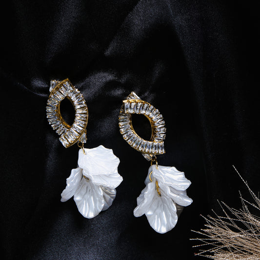 Elegant gold plated Floral Pearl Stud Earrings for Women