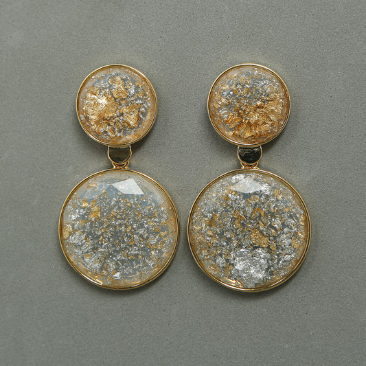 Gold & Silver Crushed Stone Statement Earrings for Women