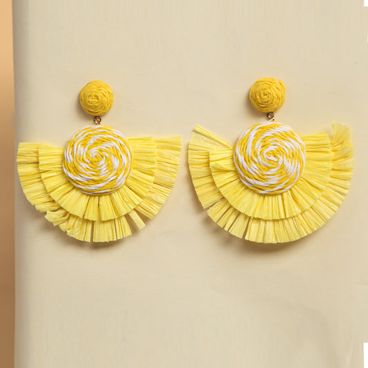 Handcrafted Yellow Raffia Fan Summer & Beach Earrings for Women