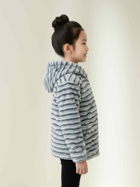 Premium Winter Blue Kids Jacket with Faux Fur Hood & Snowflake Print