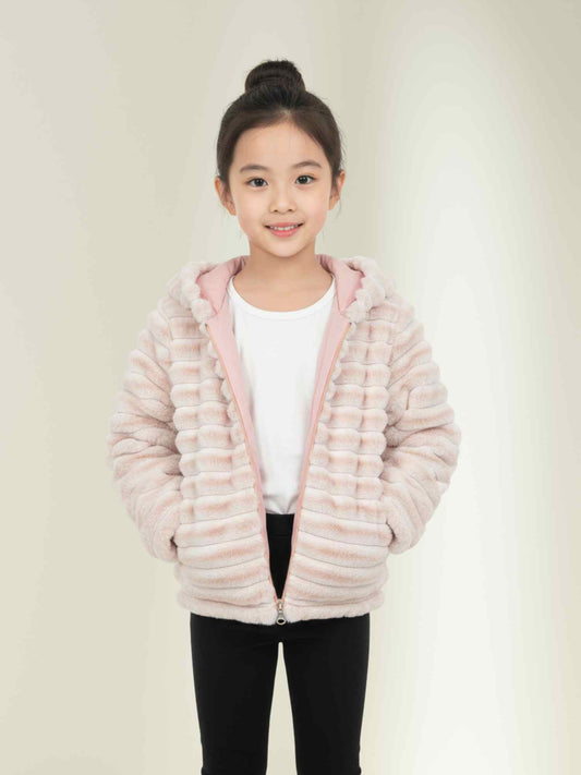 Premium Winter pink Kids Jacket with Faux Fur Hood & Snowflake Print