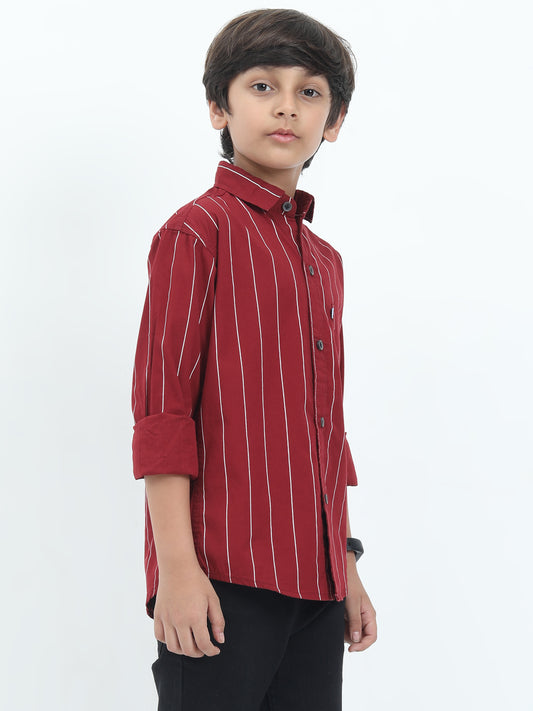 -56% OFFMaroon Stripes Cotton Shirt for KIds