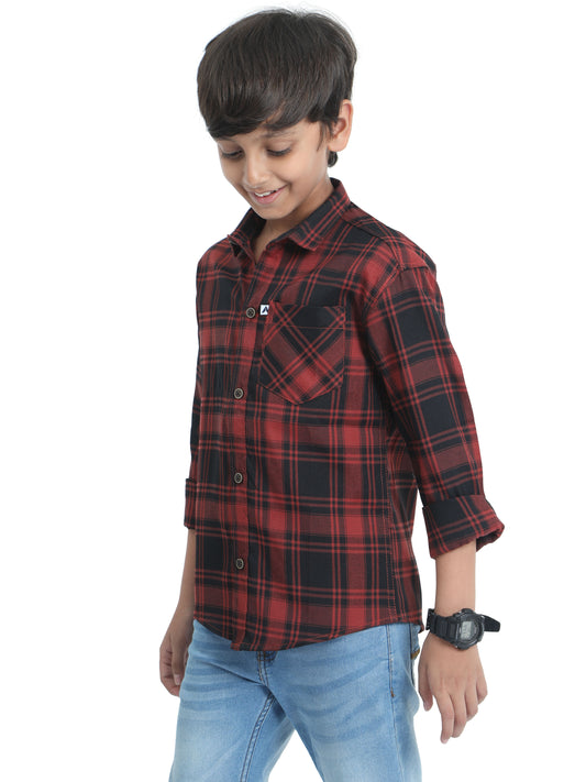 Tomtom Maroon Cotton Blend Checks Shirt For Kids