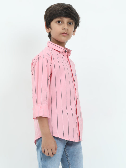 -56% OFFPink Stripes Cotton Shirt for KIds