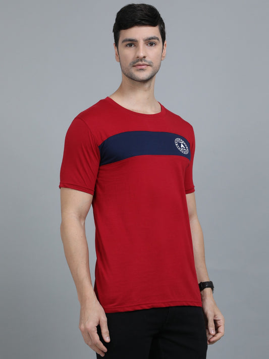 Men's Color-Block Cotton T-Shirt – Red & Navy