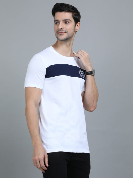 Men's Color-Block Cotton T-Shirt – White & Navy Blue