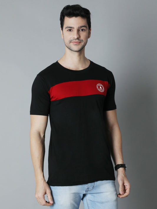 Men's Color-Block Cotton T-Shirt – Black & Maroon