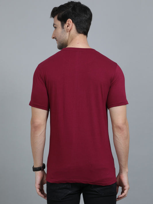 Men's Maroon Printed Cotton T-Shirt | Casual Half Sleeves Tee for Men's