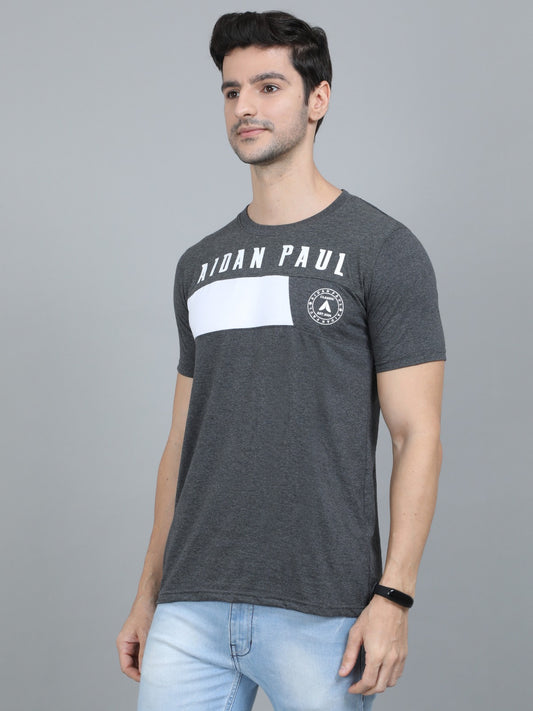 Men's Charcoal Grey Printed Cotton T-Shirt | Casual Half Sleeves Tee for Men's
