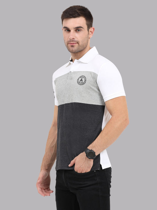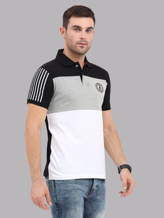 Men's Colourblocked Polo T-Shirt | Black,Grey and White Cotton Half Sleeves Tee