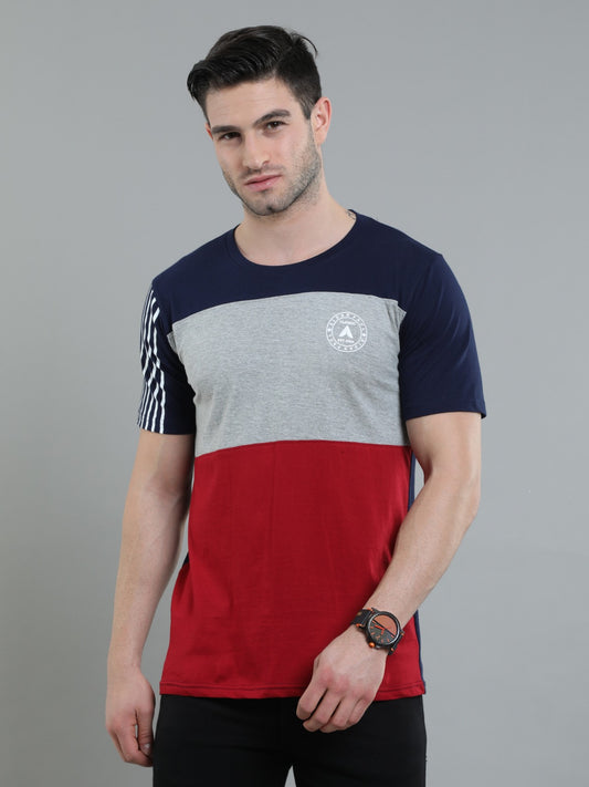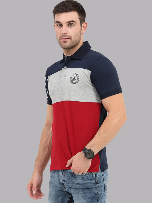 Men's Colourblocked Polo T-Shirt | Navy, Grey & Maroon Cotton Half Sleeves Tee