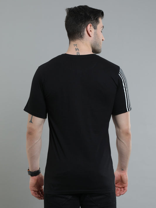 Men's Colourblocked Half Sleeves T-Shirt | Black, & White Cotton Tee with Striped Sleeve