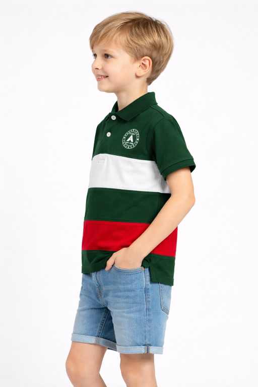 Boys Green Colorblock Polo T-Shirt – Pure Cotton, Smart Casual Wear