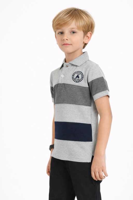 Boys Grey Colorblock Polo T-Shirt – Pure Cotton, Smart Casual Wear
