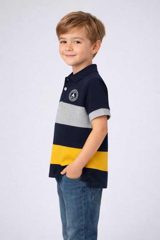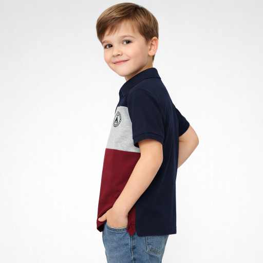Boys Navy Colorblock Polo T-Shirt – Pure Cotton, Smart Casual Wear