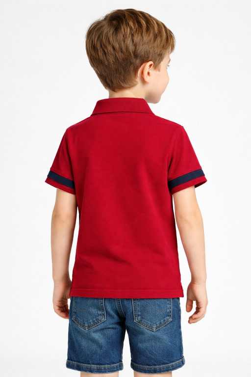 Boys Maroon Colorblock Polo T-Shirt – Pure Cotton, Smart Casual Wear