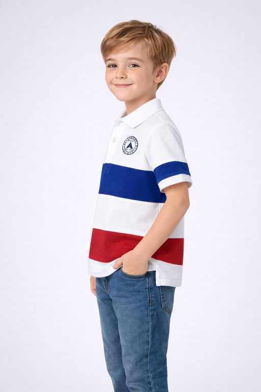 Boys White Colorblock Polo T-Shirt – Pure Cotton, Smart Casual Wear