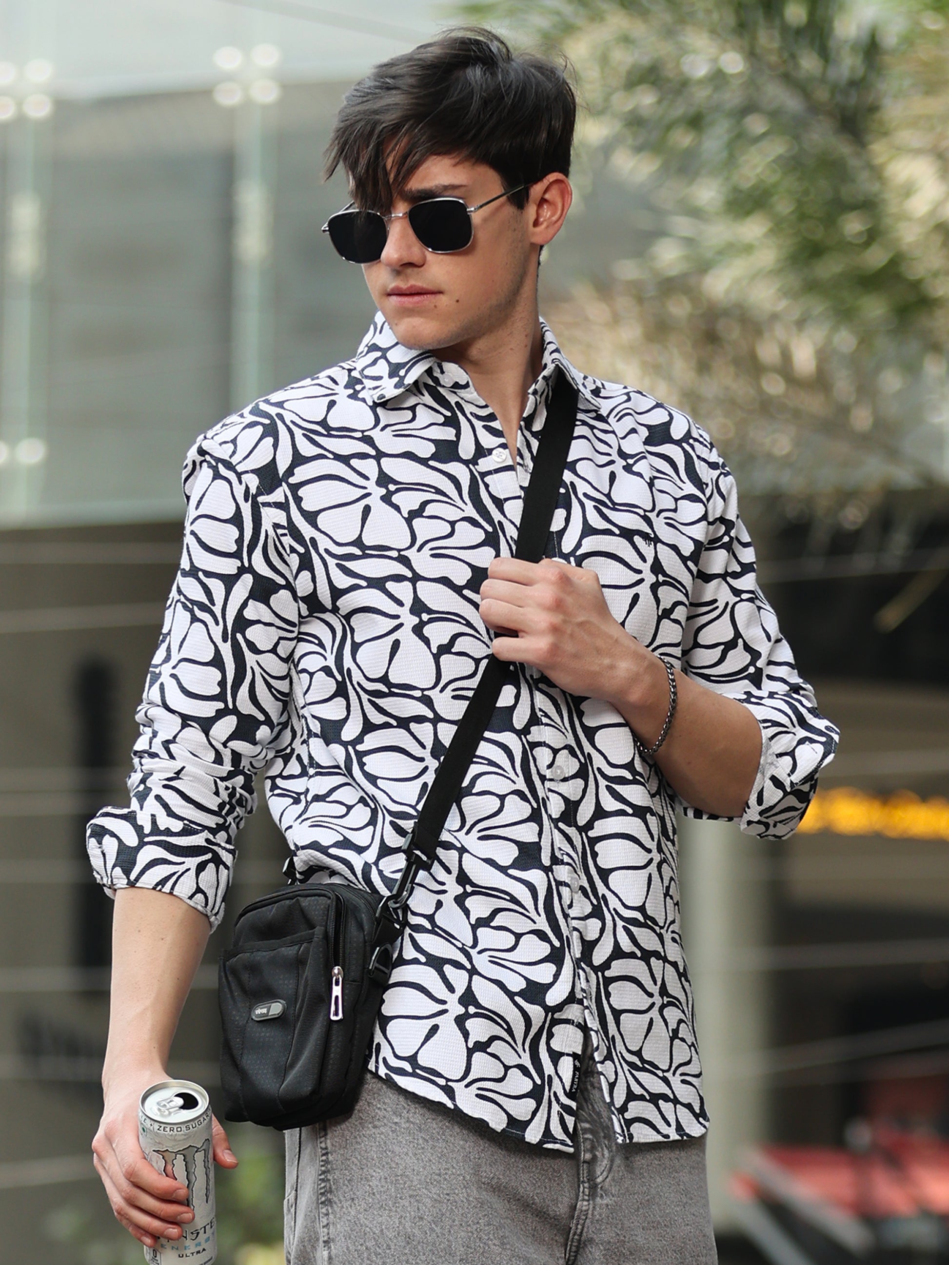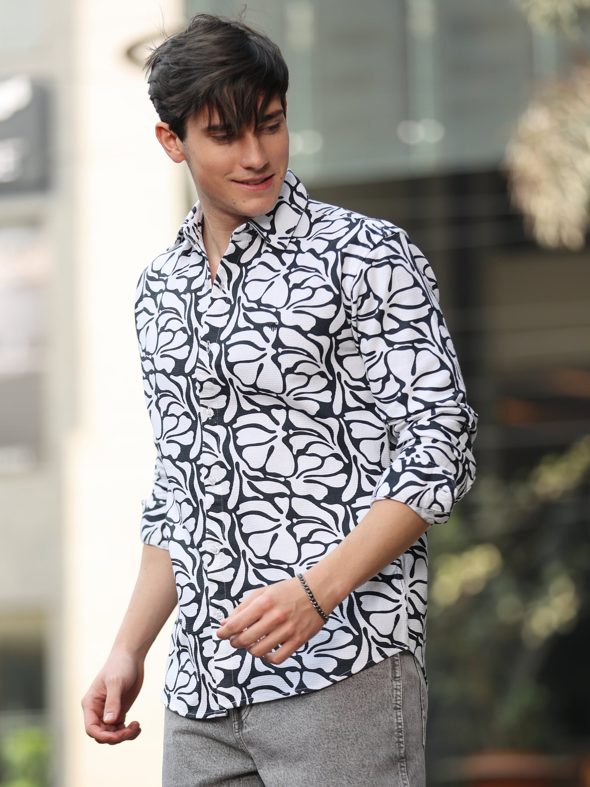 FULL SLEEVES WHITE DOBBY PRINTED SHIRT FOR MEN