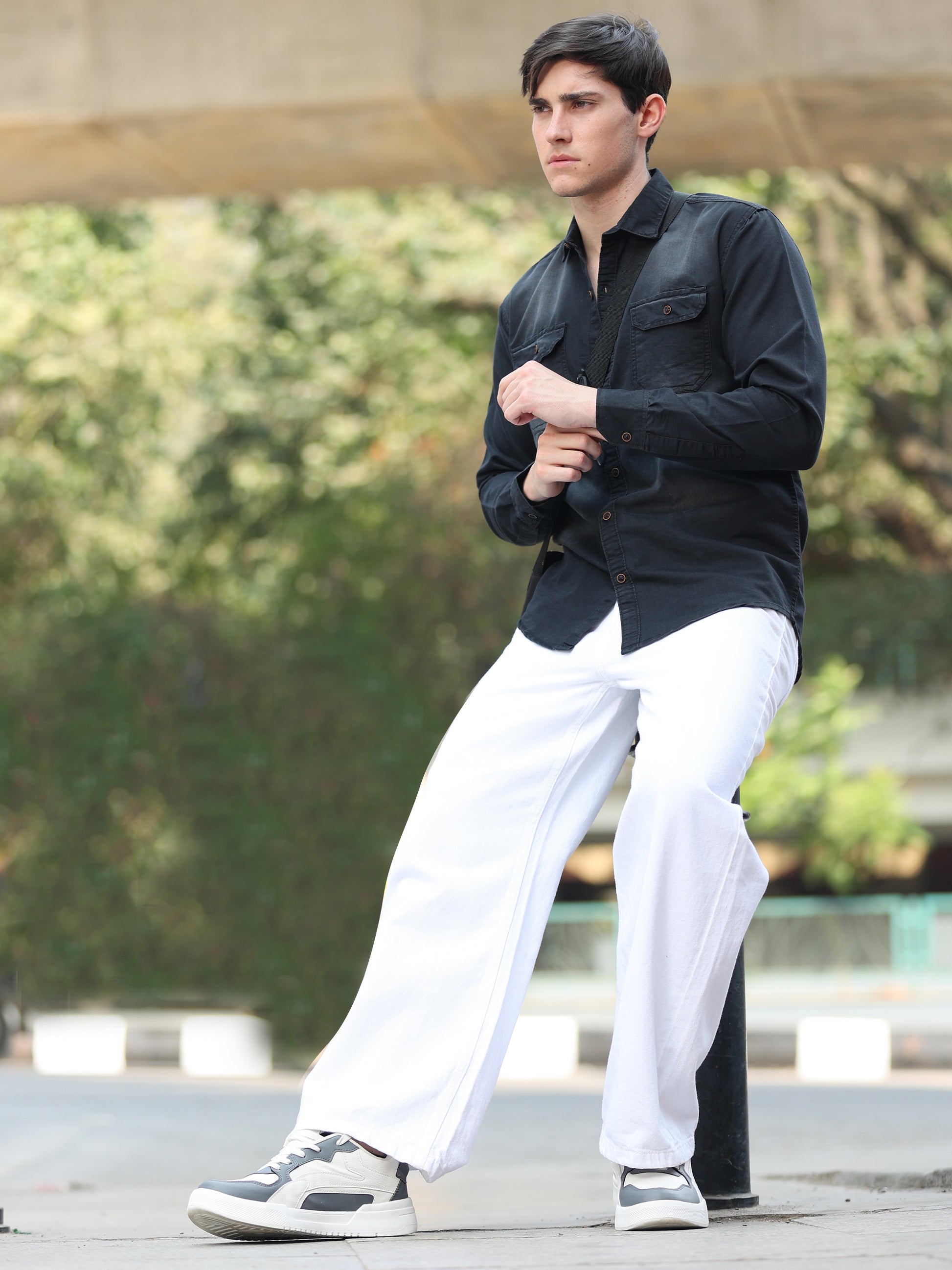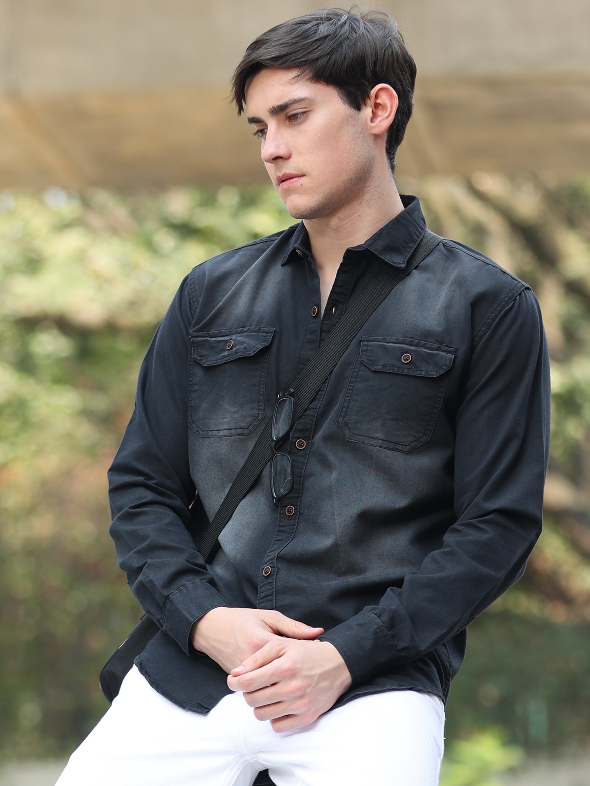 Jetblack Shade Double Pocket Cut Away Collor Denim Shirt For Men