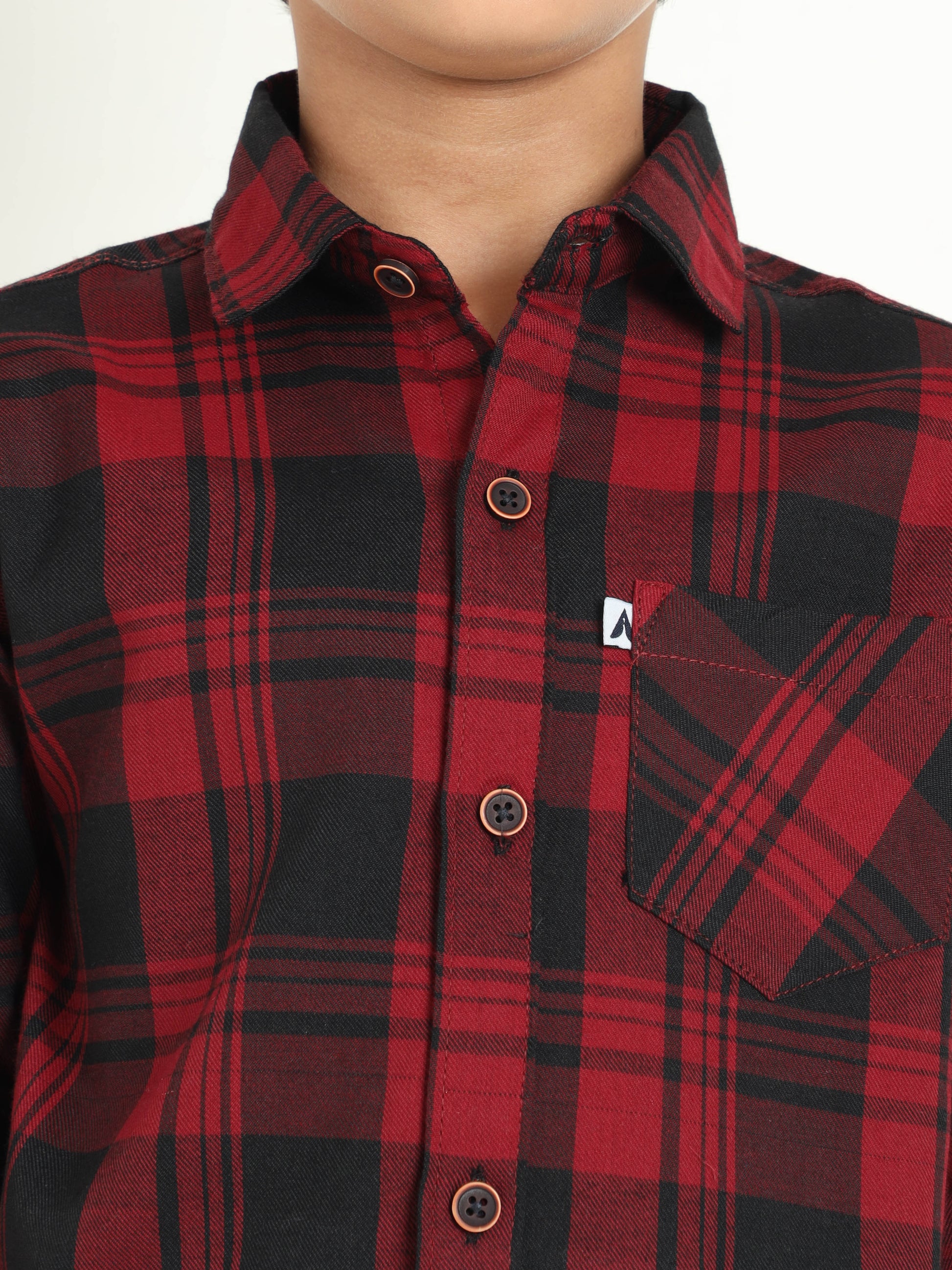 Wanted Red Cotton Blend Checks Shirt For Kids